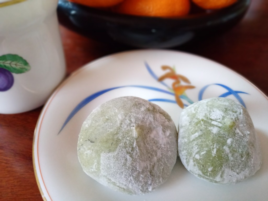 頂いた草餅とみかんでティータイム。